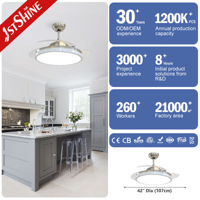 3-teiliger, zusammenklappbarer, einziehbarer Deckenventilator mit Licht, 42 Zoll, Smart Remote