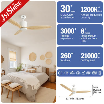 52-Zoll-Deckenventilator mit Fernbedienung DC-Motor Dekorativ 3 Holzblätter ohne Licht