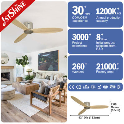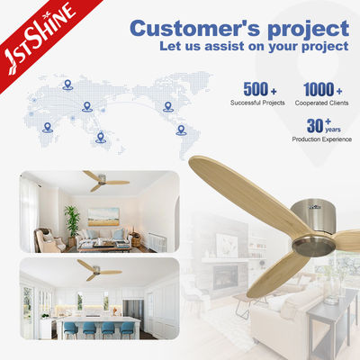Flush Mount Moderne Deckenventilatoren mit Fernbedienung 6 Geschwindigkeiten Massivholzblätter