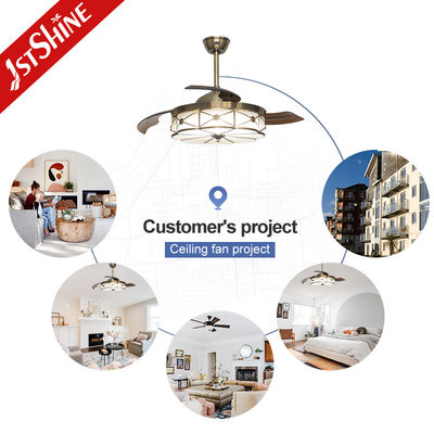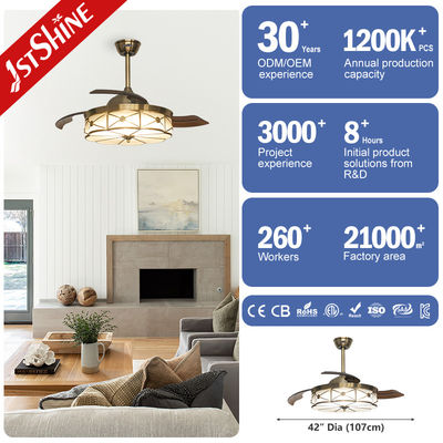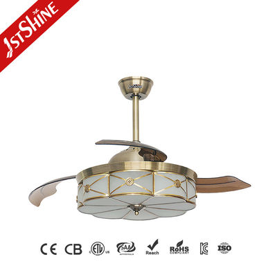 230V LED Einziehbarer Deckenventilator DC Motor Retro Reines Kupfer Dekorativ