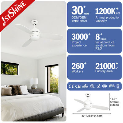 Weiß moderner Led Deckenventilator 40 Zoll DC Motor 3 Sperrholzblätter
