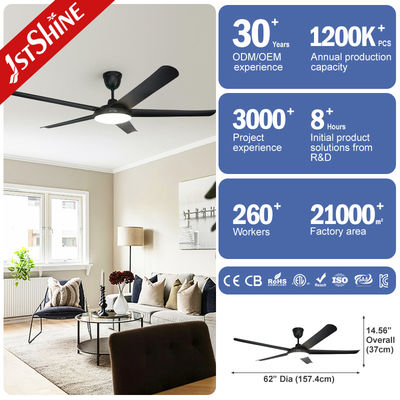 62-Zoll-Schwarz-Plastikblatt Dc-Motor 3 Farb-Led-Deckenventilator