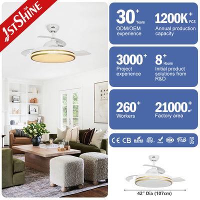 42-Zoll-Smart-Kleiner-Rückziehbarer LED-Deckenventilator mit Wifi-Steuerung für Schlafzimmer