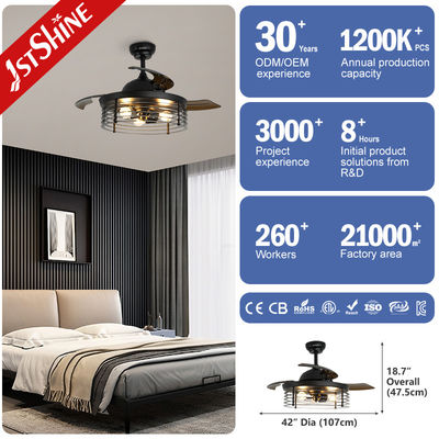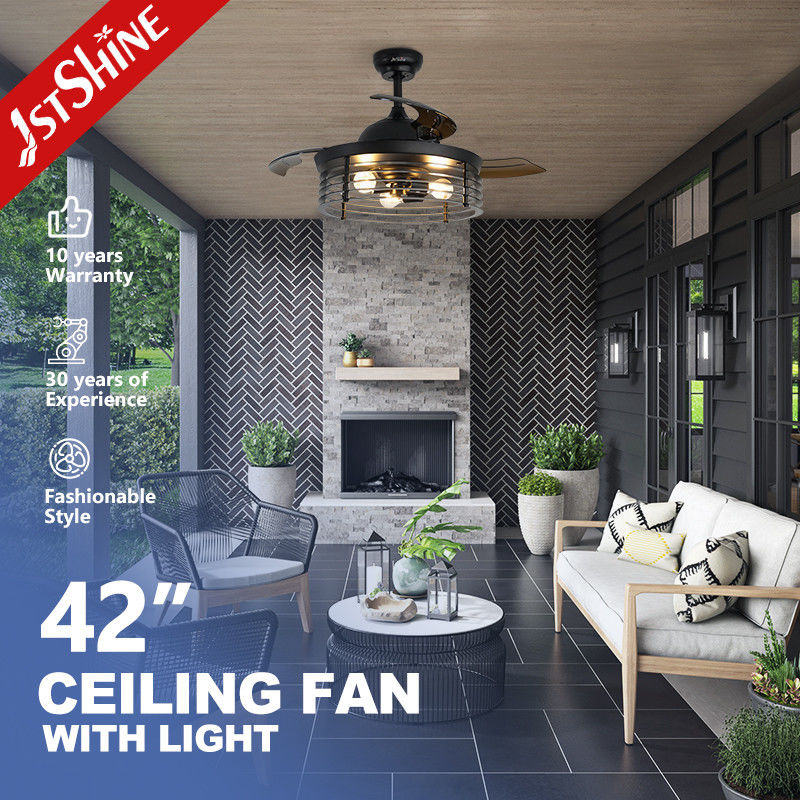 Deckenventilator mit 42''-Blättern, die sich beim Ein- und Ausschalten automatisch einziehen lassen. Klare und leichte Acrylblätter erzeugen einen starken Wind. Die Blätter bestehen aus hochwertigem PC-Material, was sie haltbarer macht. Kupfermotor: Ausgestattet mit einem leisen Motor, stabile und starke Stromversorgung, erhalten Sie eine ruhige Wohnumgebung und sorgen für ein komfortables Wohn- und Schlaferlebnis