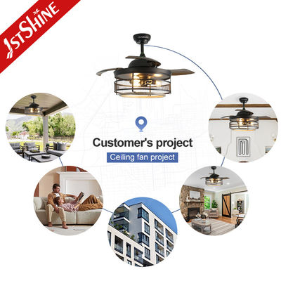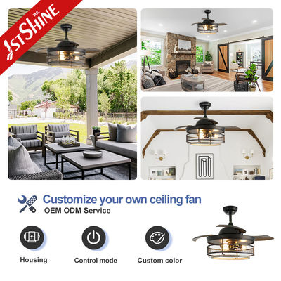 Deckenventilator mit Licht Industrie Deckenventilator Einziehbare Flügel Vintage Käfig Kronleuchter Ventilator