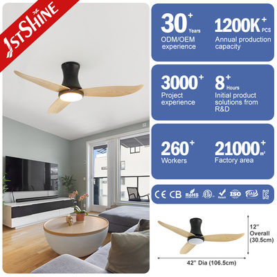 Dieser schlanke und moderne 42-Zoll-Deckenventilator verfügt über eine schwarze Oberfläche und drei Holzkornblätter, die jedes zeitgenössische Dekor ergänzen.Dieser Ventilator eignet sich perfekt für Schlafzimmer oder andere Räume, wo man sich ohne Lärm entspannen möchte.Mit sechs einstellbaren Geschwindigkeiten können Sie den Luftstrom nach Ihren Wünschen anpassen.