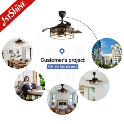 Unser Bauernhaus Deckenventilator mit Lichtern hat 3 unsichtbare Ventilatorenblätter, die sich automatisch ausstrecken und nach innen bringen, wenn der Ventilator eingeschaltet/ausgeschaltet wird.Sie werden langlebiger. Passt zu Ihren Bedürfnissen in allen Jahreszeiten. Die Deckenlüfter des Bauernhauses verfügen über 3 Standard-E27-Halter, und jeder Halter ist geteilt. Jede E27-LED-Glühlampe kann ohne Entfernen des Käfigs leicht zusammengebaut werden.Ideal für das Wohnzimmer, Schlafzimmer, Restaurant, Esszimmer usw.