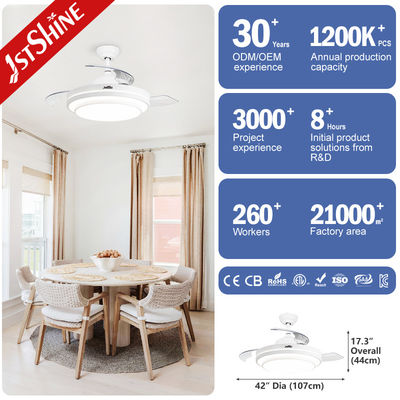 Einziehbare Klingen-Deckenventilatoren werden separat über die Fernbedienung gesteuert.Die transparente Klinge hat eine Teleskopfunktion, die die Klinge automatisch schließt, wenn sie nicht in Betrieb ist, wodurch Platz gespart und die Staubansammlung reduziert wird. Hergestellt aus ABS-Material, leicht zu reinigen und robust.Im Vergleich zu herkömmlichen Deckenventilatoren ist der einziehbare Deckenventilator mit Fernbedienung viel einfacher zu installieren und frei von Erschütterungen. Geeignet für Lounge, Kinderzimmer und Bauernhaus.