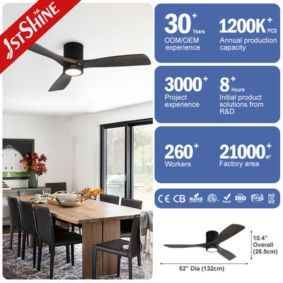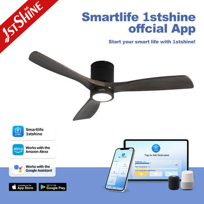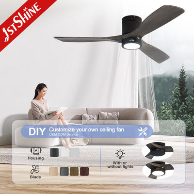 Dekorative 3 Naturholzblätter Flush Mount Led Tuya Smart Deckenventilator mit Licht