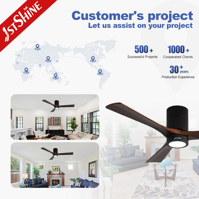 Dekorative Deckenventilator mit 3 natürlichen Holzflügeln und LED-Leuchten, Tuya Smart, bündig montiert