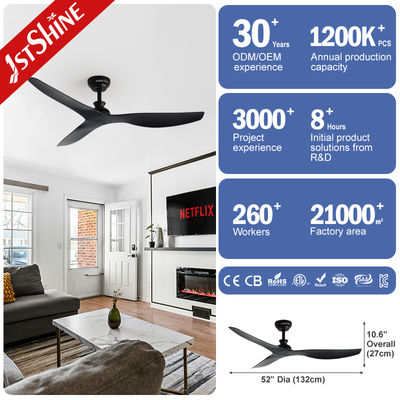 60 Zoll DC Motor Schwarz Kunststoff Geräuscharmer Deckenventilator mit 5-Geschwindigkeits-Fernbedienung