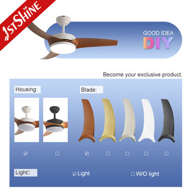 Erhältlich in verschiedenen Karosserie- und Klingenfarben, Materialien (Solid Wood, MDF, ABS) und Steuerungsmodi (Fernbedienung, Wand, App, Sprachsteuerung). |