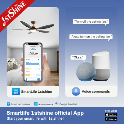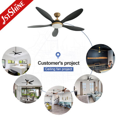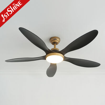 Introducing our Modern 56-inch Ceiling Fan, designed to deliver optimal performance with energy-efficient operation. This fan combines sophisticated black blades with a brassy body finish, creating an elegant addition to any interior space. Featuring 5 ABS blades and a quiet DC motor, it ensures powerful airflow while maintaining a peaceful environment. The integrated 3-color LED light provides adjustable, efficient illumination. With reversible airflow and timing functions, this durable fan crafted from metal, plastic blades, and an acrylic lampshade offers both style and functionality.